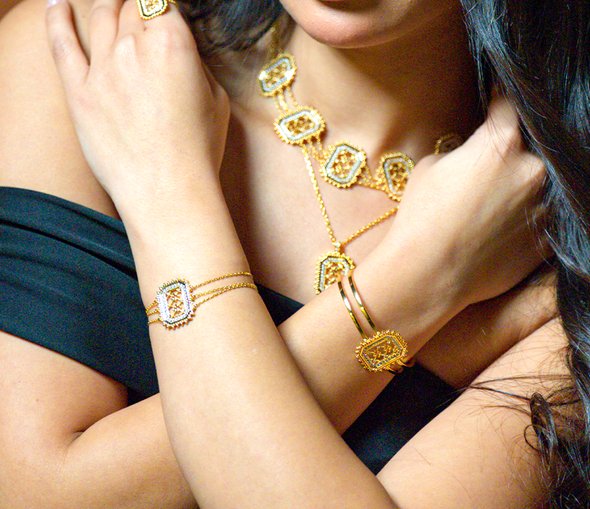 نقدم لكم مجموعة ريتاج: حيث تلتقي السماء بالأرض. كل قطعة في هذه المجموعة الرائعة هي بوابة للأناقة الأبدية، مستوحاة من الجمال الأثيري للسماء. صُنعت مجموعة ريتاج مع الاهتمام الدقيق بالتفاصيل، وهي ليست  مجرد مجوهرات؛ إنها تجربة فريدة، مصممة لتجعلك تشعرين بأنك لا مثيل لك وساحرة و فاتنة.