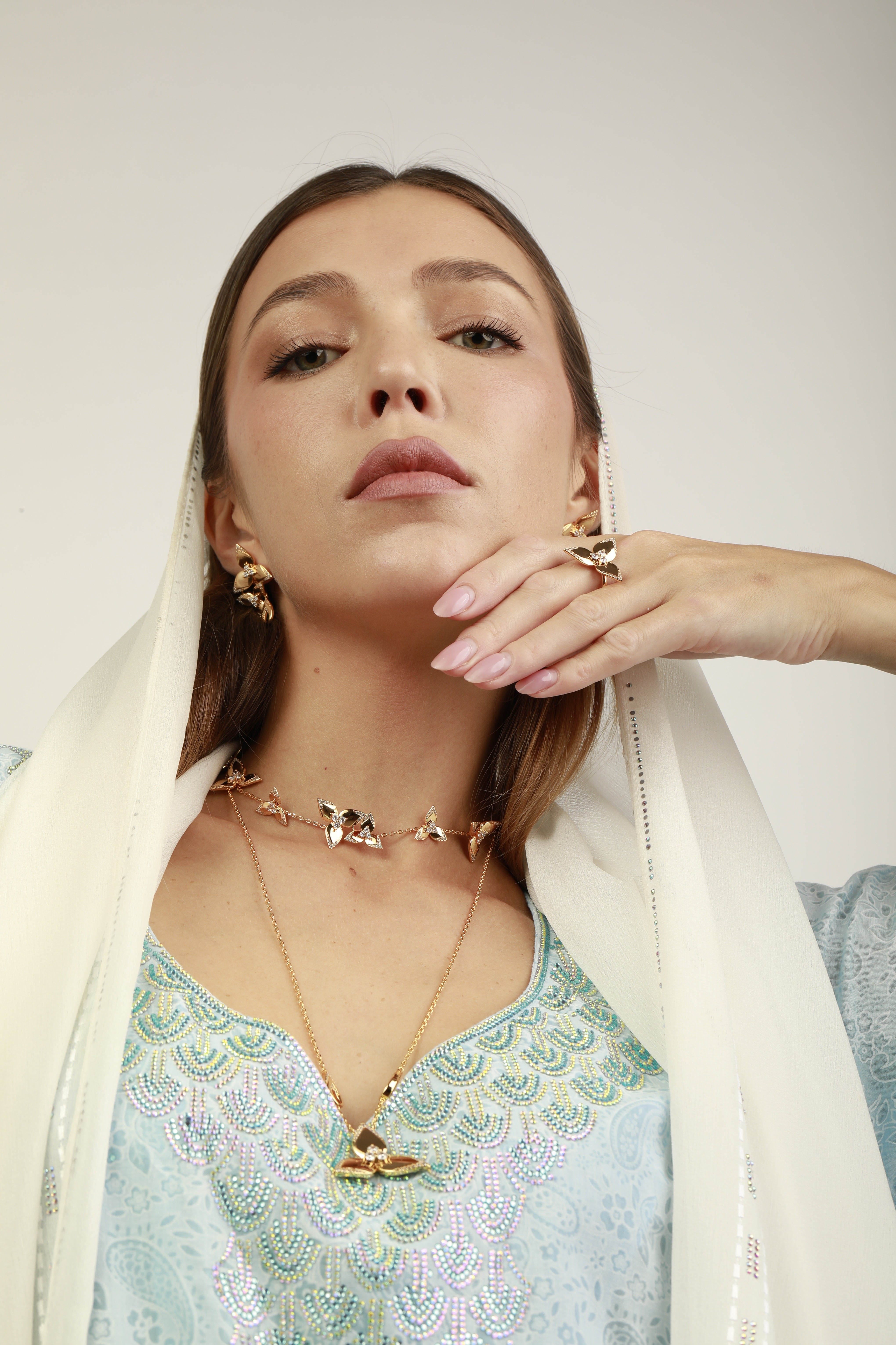 Flora collection is a timeless embodiment of nature’s delicate elegance. Inspired by the vibrant petals of the Bougainvillea flower, this collection features intricate floral motifs, expertly crafted in radiant gold. The signature design captures the flower's graceful charm, adding a touch of sophistication and beauty to your look.