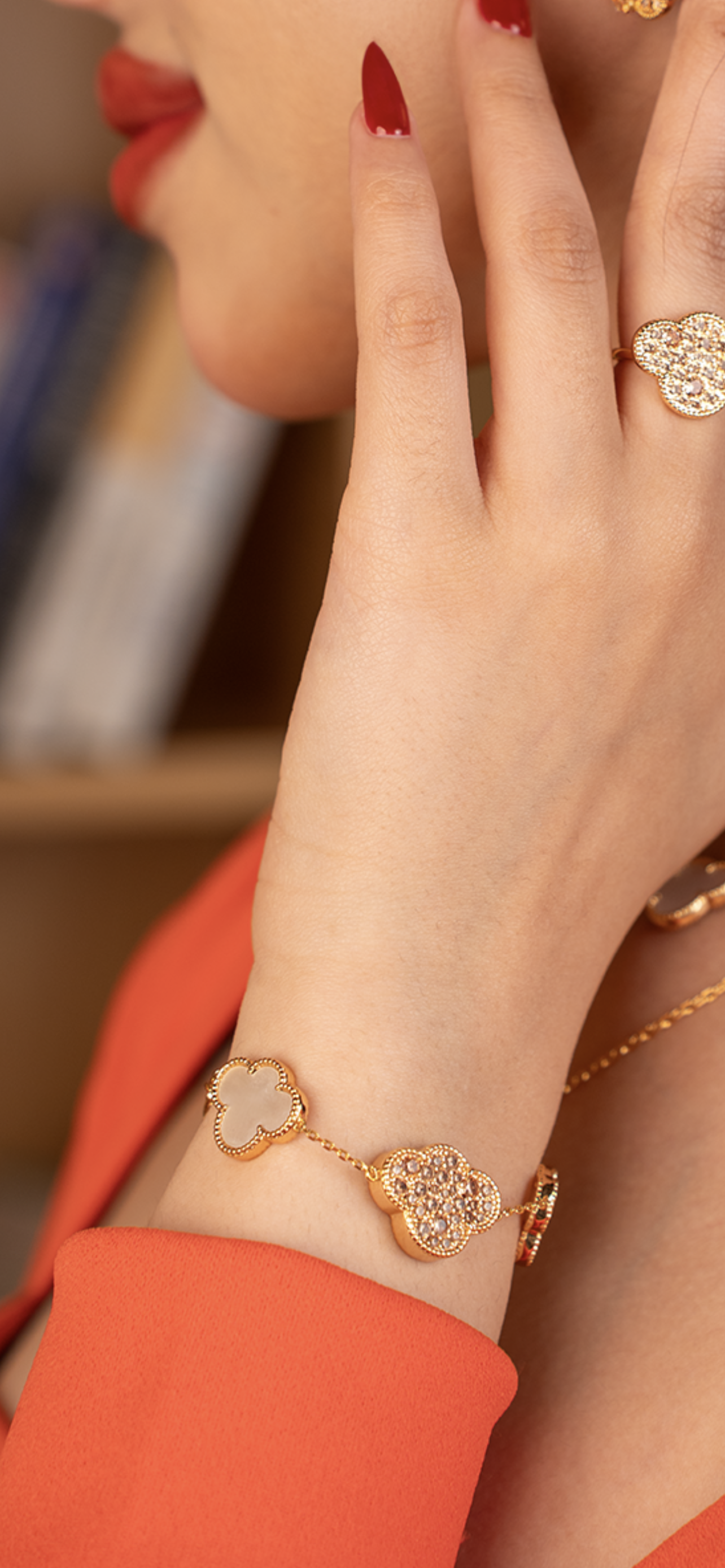 Discover the Muzna Collection — This elegant bracelet wraps your wrist with alternating clouds of shimmering pavé and smooth mother-of-pearl. Gold-plated and delicately crafted, it’s the perfect balance of soft beauty and everyday luxury.