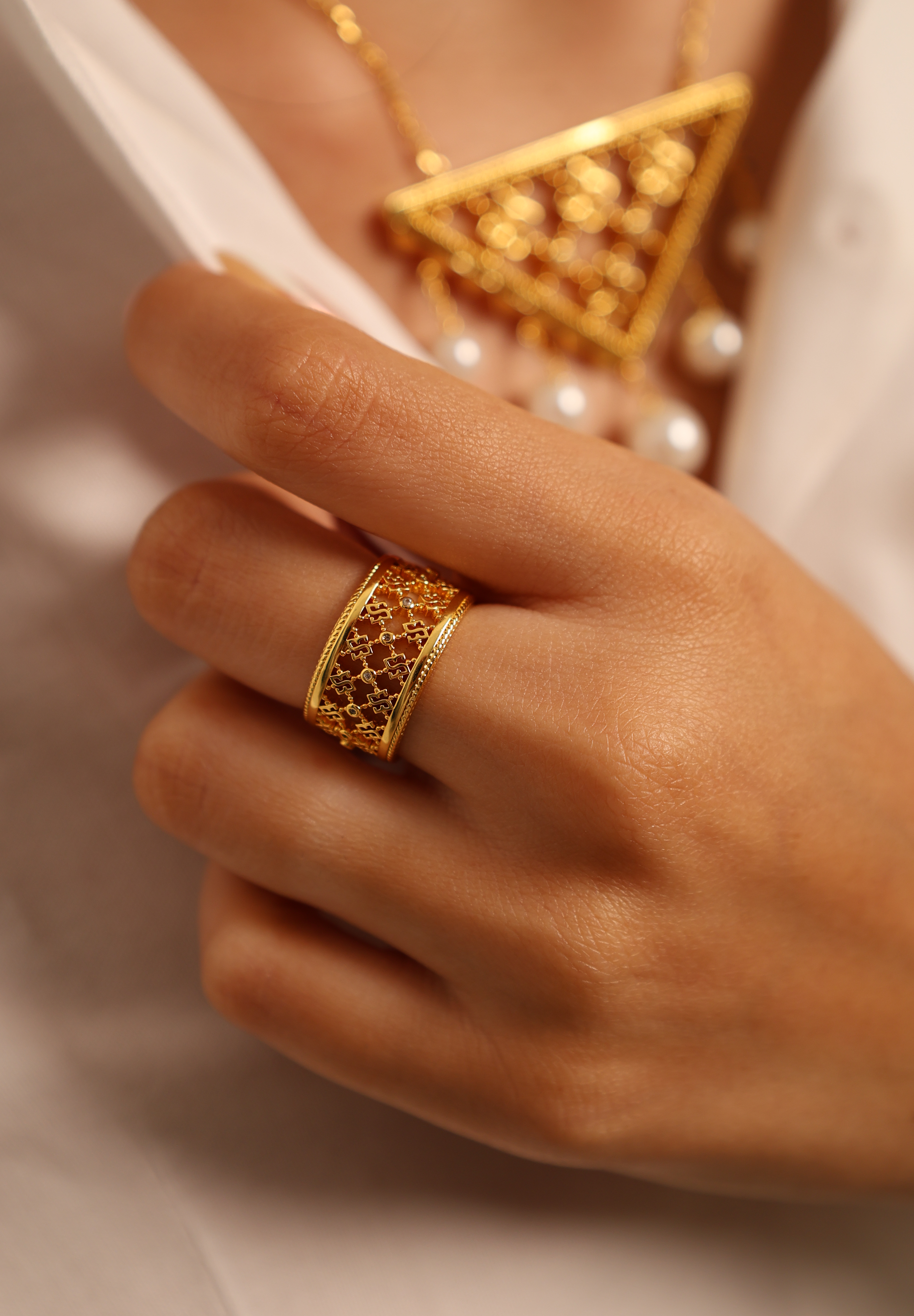 A piece of jewelry that is a perfect fit for Eid and Ramadan attire or any special occasion. A perfect gift for yourself or your loved ones. Whether you want to wear it for Eid, Ramadan, weddings, or any special occasions, this ring will sure turn heads.