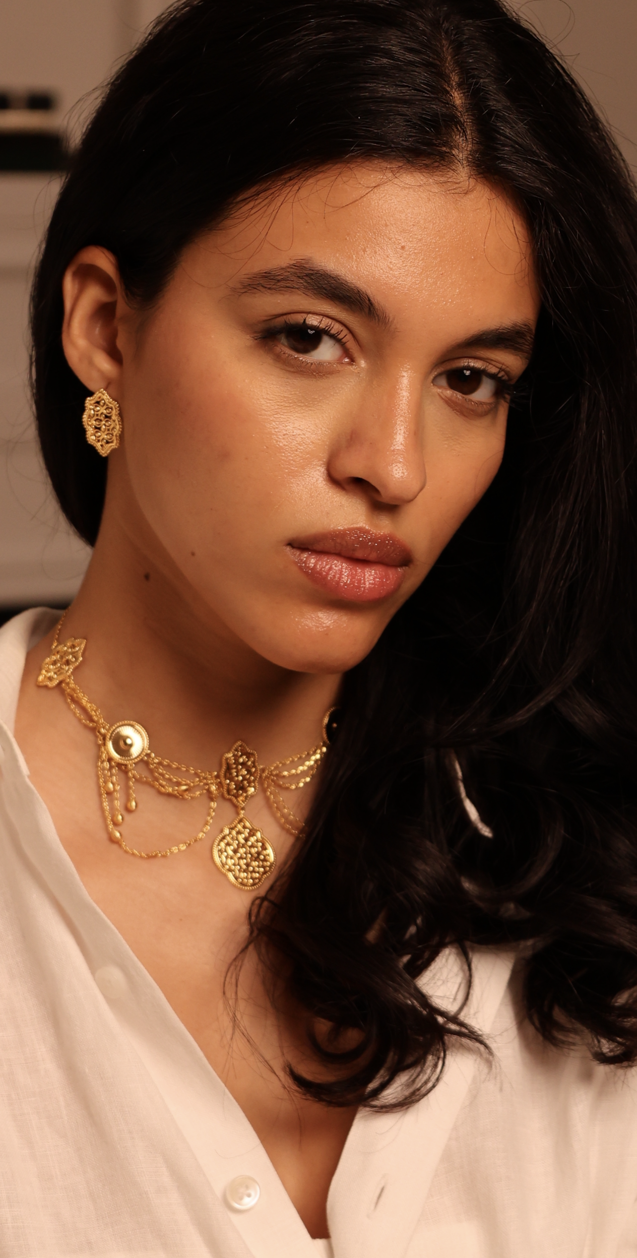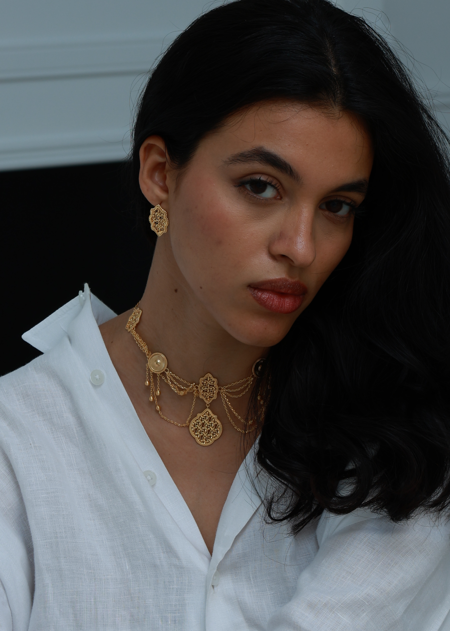 The Layali Stud Earrings feature an intricate geometric design inspired by traditional Arabesque patterns. Perfectly sized for everyday wear yet elegant enough for Ramadan gatherings, Eid celebrations, weddings, and special occasions, these earrings add a refined touch to any outfit.
