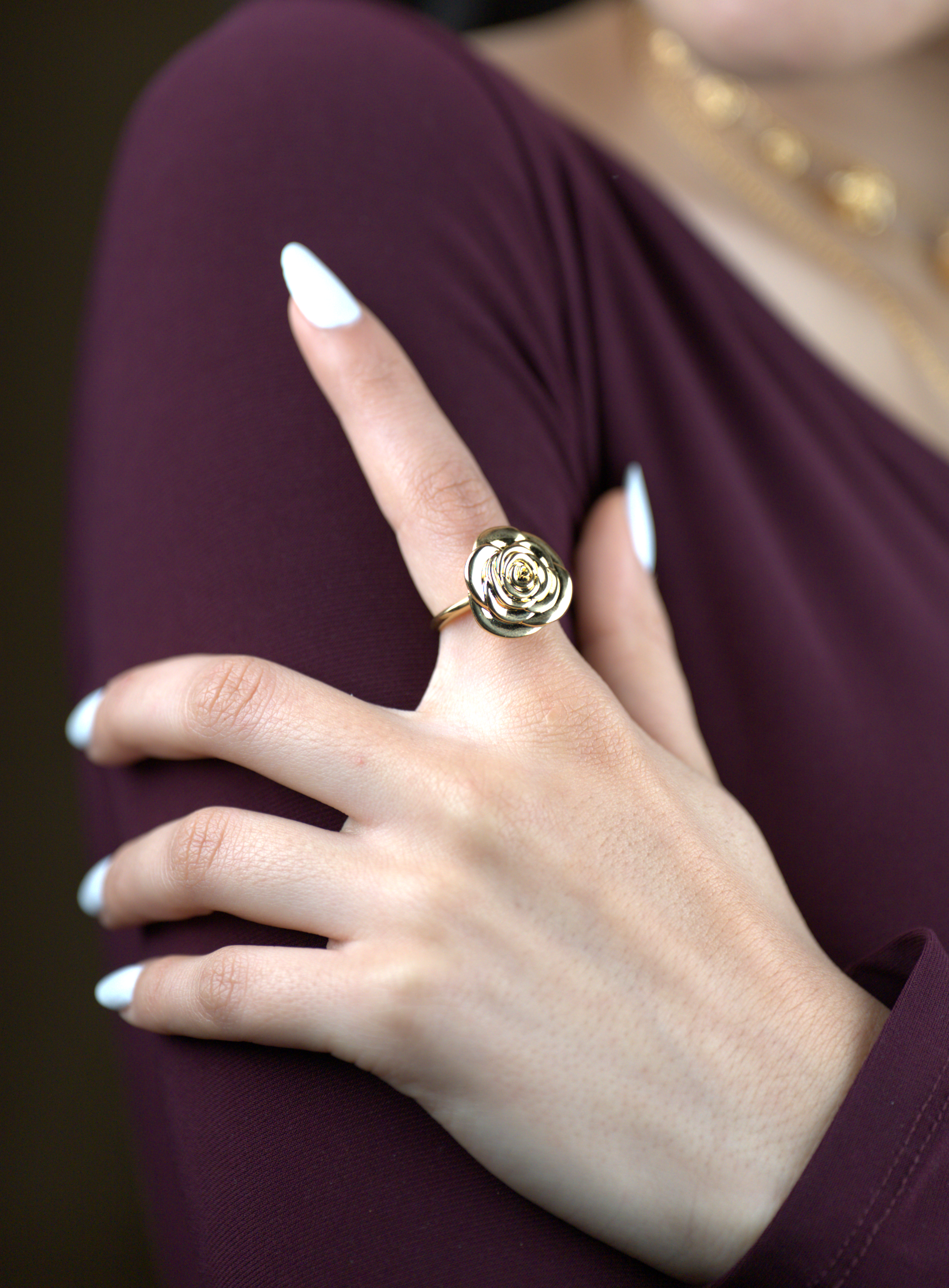 The Joury Ring showcases a beautifully crafted rose design with layered petals and a radiant gold finish. Bold yet graceful, this ring is a symbol of femininity, love, and confidence. Designed with a free-size fit, it offers comfort and flexibility while remaining effortlessly elegant.